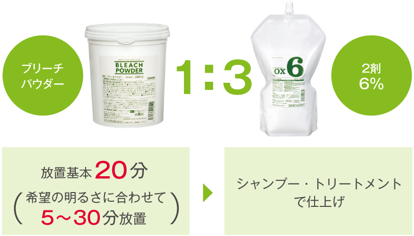 MMブリーチパウダー:2剤6%=1:3