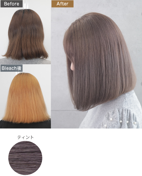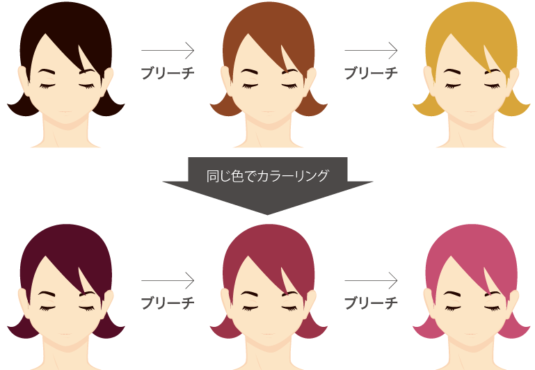 ベースの色によって、同じ色でカラーリングしても仕上がりの色は全く違ってくるため、ベースを明るく整える必要があります。