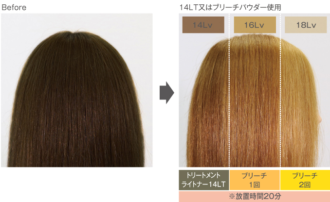 ブリーチオンカラーの場合は16~18Lvにブリーチすることが多いです。