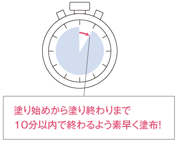 塗り始めと塗り終わりの部分のタイムに10分以上ギャップがでないように塗布してください。