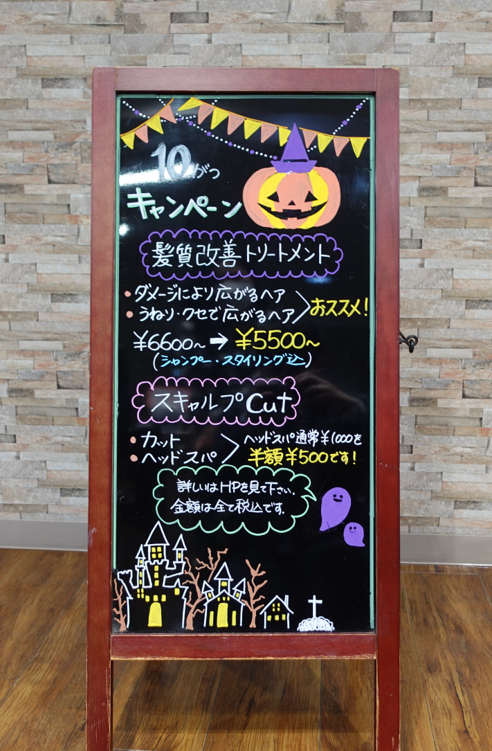 ※毎月変更しているキャンペーンを案内する看板はイラスト含めてスタッフが手書きされているとのこと。