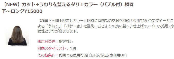 ダリエカラーとしたのも、キラーワードを意識してのメニュー名でした。(”ダ”メージケア/”リ”ペア/”エ”イジング)