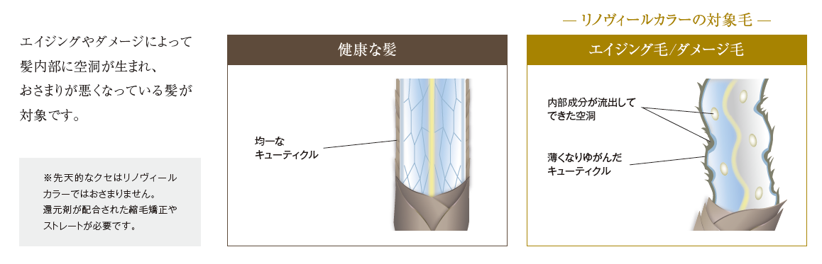 当店でも大人髪特有のクセやうねりの悩み需要に対応できる商品としてリノヴィールカラーを導入しました。