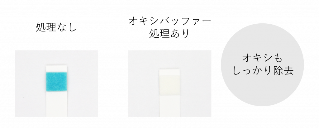 このアルカリを抑えるものにはクエン酸などの酸成分を配合した処理剤がありますが、ここで重要なのは酸成分が入っていれば何でもOKではなく、バッファー作用(pHをとどめる作用)があるものを使用します。バッファー作用がないものは塗布後、一時的にpHが中性以下になりますが、またすぐにアルカリ性に戻ることがあります。