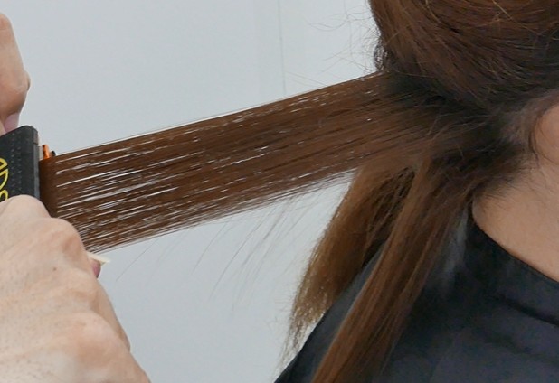 今回のアイロン技術のポイントは、髪を「蒸す」ことです。