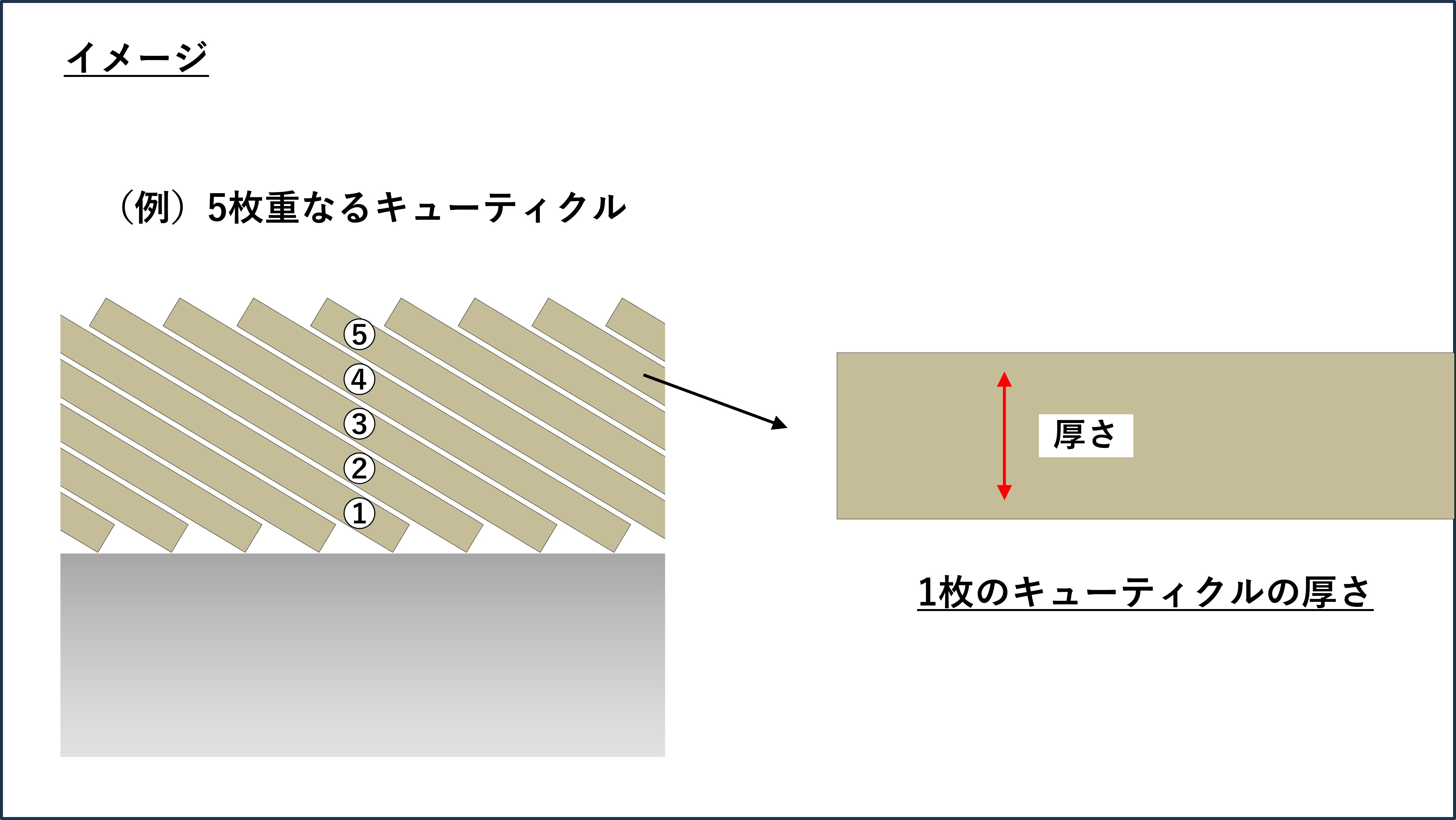 1枚のキューティクルの、最上層の組織をエピキューティクルと言います。