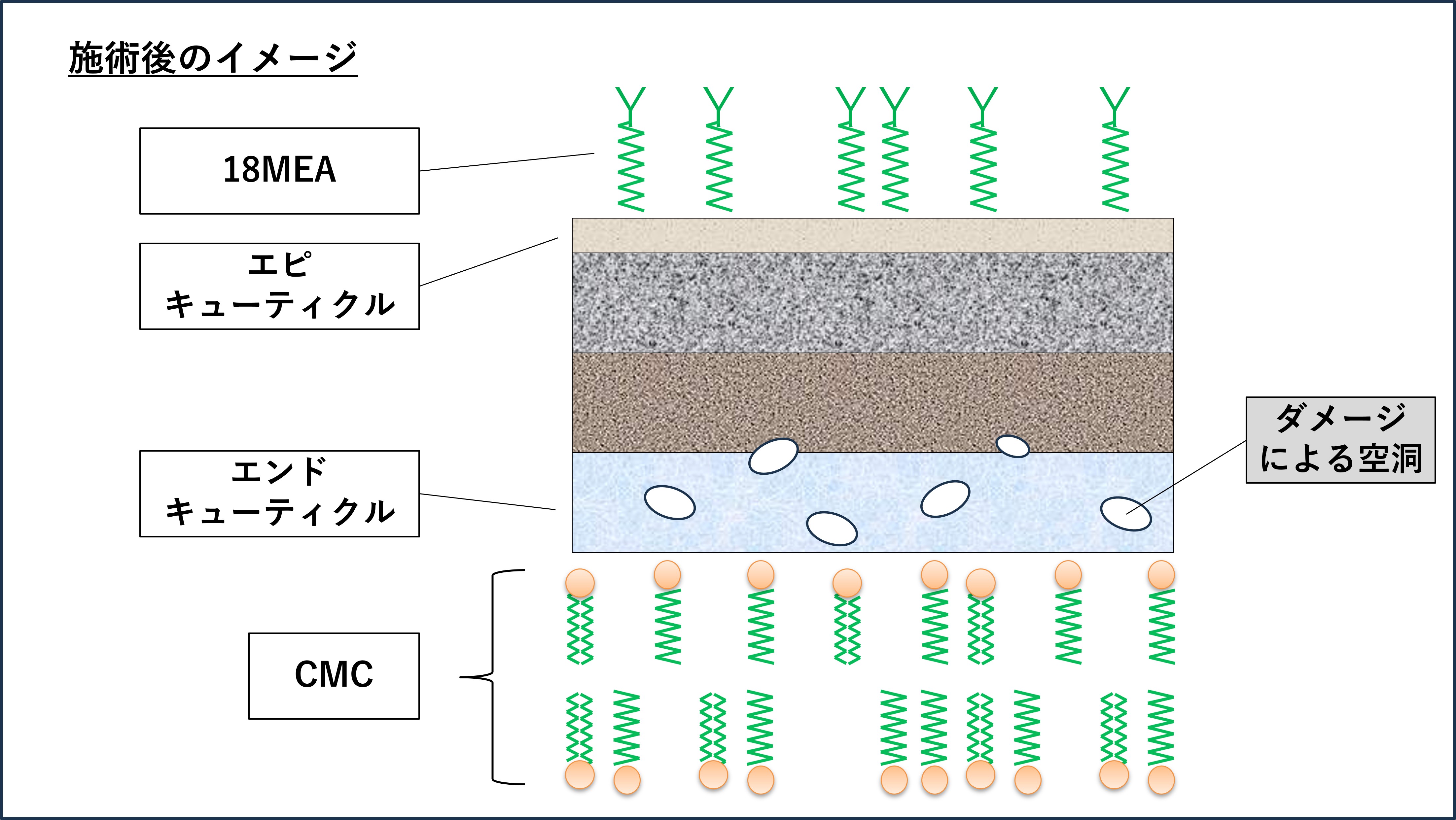 先ほど説明したように、薬剤の通り道であるCMCに隣接するエンドキューティクルは、水分を吸収しやすい性質のため、CMCから溢れた薬剤を吸収しダメージを受けます。