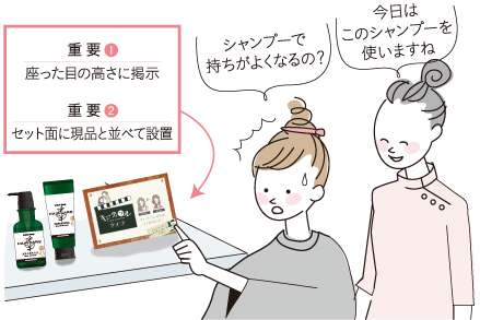(例)乾燥シーズンに「パサつき対策トリートメントキャンペーン」のようにイベントを企画したケースと何もしていないケースではお客さまの気持ちが変わります。
