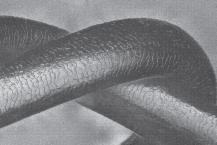 加齢により枚数が減り、薄くなったキューティクルのこと