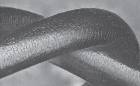 加齢により枚数が減り、薄くなったキューティクルのこと