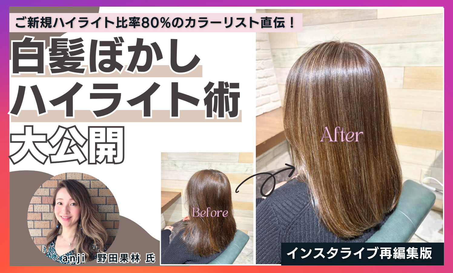 そこで、インスタライブでも大好評だった anjiの野田 果林さんによる「白髪ぼかしハイライト術」を大公開!