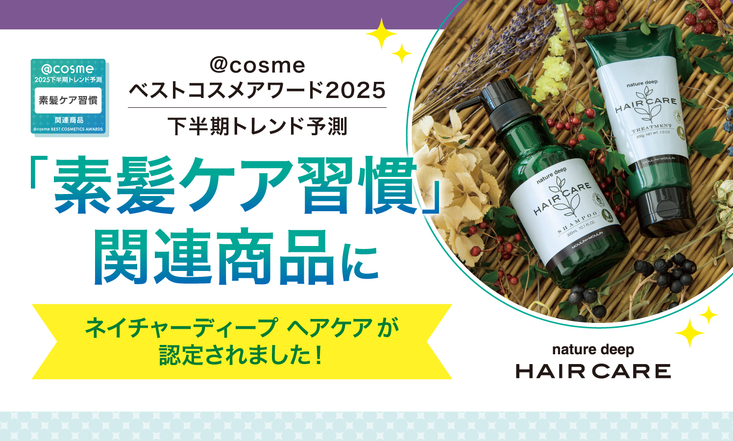 『ネイチャーディープ ヘアケア』が@cosmeベストコスメアワード2025下半期トレンド予測「素髪ケア習慣」関連商品に認定されました!