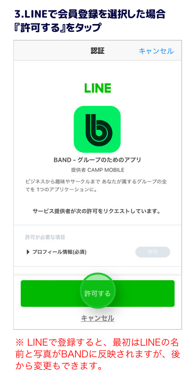 ※スマホからご利用は、BANDアプリのダウンロードが必要になります。