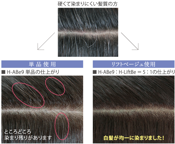 染まりにくい髪質の方(髪の太い方、硬い方、撥水毛)にはリフトベージュを使用します。