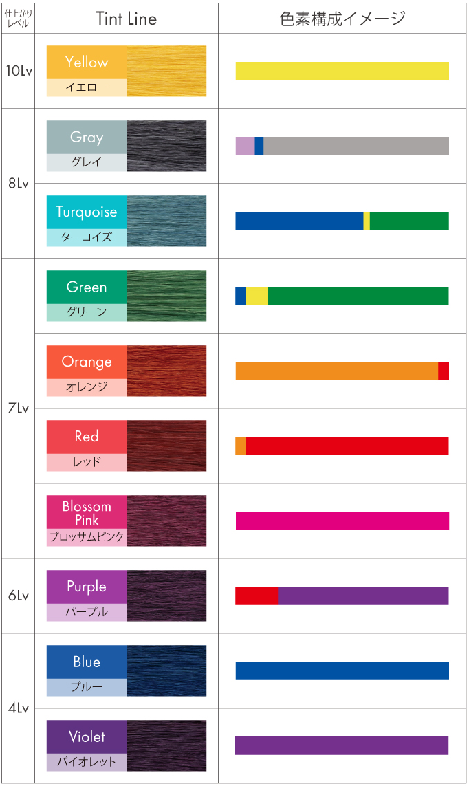 • リフト力を抑えながらも濃さで色味を表現するため、 仕上がりの発色がキレイで褪色しても明るくなりすぎない