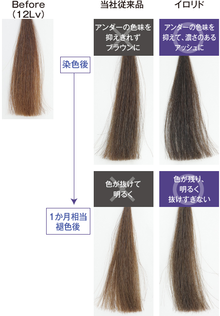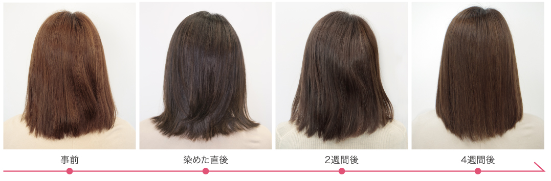 染めた時はなじんだように見えますが、ブラウン味が少なすぎるため、白髪が浮いて見えやすく、色持ちも良くありません。