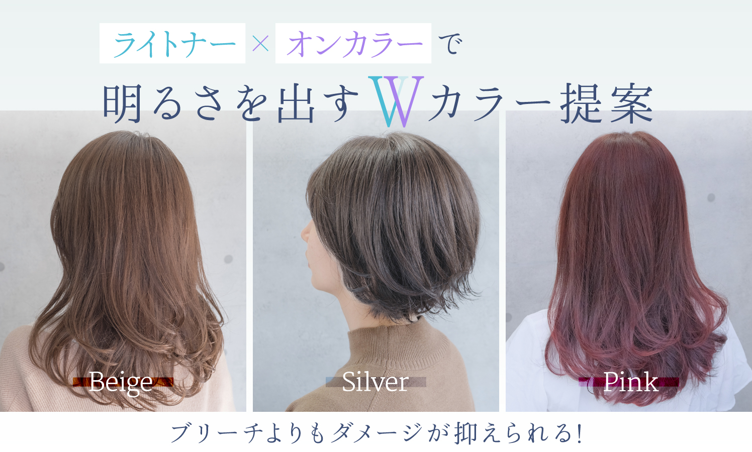 2026/1/5 イロリドから、高彩度・濃色コントロールカラー“ティントライン” が発売! 低アルカリ×濃厚発色のファッションカラー イロリド に、彩り豊かなコントロールカラーが加わりました。 さらに、色調調整に役立つ クリア や ライトナー/ハイライトナー もラインナップ。 ヘアカラーの多彩な色表現に活躍するアイテムです。ぜひご活用ください。 ※イロリドからのコントロールカラー発売に伴い、従来のトリートメントティント/ライトナー は在庫限りで終売となります。引継ぎ色に関しては色味やリフト力に変更はありません。詳細は別途ご案内をご確認ください。 INDEX 高彩度な濃色コントロールカラー“ティントライン” 暖色系の色味(オレンジ・レッド・ブロッサムピンク・パープル) 補色使いにも便利な寒色系(ブルー・ターコイズ・グリーン・バイオレット) 色を明るく見せたいときに(イエロー) 色をくすませたいときに(グレイ) 色を淡くしたい・薄くしたいときは“クリア” 髪を明るくしたい・リフト力を高めたいときは“ライトナー/ハイライトナー” 高彩度な濃色コントロールカラー“ティントライン” ティントラインは、クリアでストレートな発色の濃色コントロールカラーです。 イロリドの基本ラインと組み合わせて色味を強調したり色幅を広げることができます。 グレイカラーとのMixや単品でも使用可能です。(単品のリフト力は7Lv相当) イロリドの基本ラインではアンダー補正用にラベンダーなどの色素を含んでいますが、ティントラインはストレートな色味が特長です。 ▲上に戻る 暖色系の色味(オレンジ・レッド・ブロッサムピンク・パープル) 暖色系は色のアレンジや単色使いにオススメ。 彩度と色味の濃さで、単品で中明度の髪にお使いいただいても色味がしっかり出るのがポイントです。 ハイトーンで使用すると一層彩度が引き立ちます。 パープル事例 https://m-moulin.jp/color/p123188/#aaa Before 14Lv Color I-13A:ティントライン パープル=1:8(2剤4%) ブロッサムピンク事例 https://m-moulin.jp/color/p123198/#aaa Before 10~12Lv 新生部2cm Color ティントライン ブロッサムピンク(2剤6%) オレンジ事例 https://m-moulin.jp/color/p123195/#aaa Before 新生部 なし 全体17Lv Color ティントライン オレンジ(2剤2%) レッド事例 https://m-moulin.jp/color/p123203/#aaa Before 8Lv Color 新生部 I-13P:ティントライン レッド=1:3(2剤4%) 既染部 ティントライン レッド:ライトナー=3:1(2剤6%) グレイカラー事例(オレンジブラウン) https://m-moulin.jp/color/p123573/#aaa Before 新生部3㎝ 白髪率30%、既染部 10Lv Color ネイチャーディープカラーD-NB9:ティントライン オレンジ=5:1(2剤6%) ▲上に戻る 補色使いにも便利な寒色系(ブルー・ターコイズ・グリーン・バイオレット) 寒色系は色味の強調以外にも補色として活躍します。 ブルー・グリーン・バイオレットは、補色としてすでに使い慣れている方も多いと思いますが、ターコイズは少し珍しく感じられるかもしれません。 ターコイズ(青緑)は、オレンジ〜赤味の補色にあたります。また、青や緑に比べて色が沈みにくい点が特長です。 使い分けの目安として、以下を参考にしてください。 ブルー :オレンジ味をしっかり抑えたいとき ターコイズ:オレンジ~赤味を消したいとき、ブルーやグリーンでは色が沈みそうなとき グリーン :赤味をしっかり抑えたいとき ターコイズ事例① https://m-moulin.jp/color/p123179/#aaa Before 16Lv Color ティントライン ターコイズ(2剤2%) ターコイズ事例② https://m-moulin.jp/color/p123672/#aaa Before 8Lv Color I-7M:ティントライン ターコイズ=1:3(2剤2%) ブルー事例 https://m-moulin.jp/color/p122538/#aaa Before 8Lvから2回ブリーチして18Lvに Color I-5A:ティントライン ブルー:I-7BV= 2:1:1 (2剤2%) グレイカラー事例(アッシュブラウン) https://m-moulin.jp/color/p123563/#aaa Before 新生部:白髪率30%、3cm 既染部:10Lv Color 全体 ネイチャーディープカラーD-GrB9:ティントライン ブルー = 5:1 (2剤6%) ▲上に戻る 色を明るく見せたいときに(イエロー) あざやかなイエローは髪を明るく見せながら色味を調整 したいときに効果的です。単体の使用でも仕上がり明度は約10Lvとなります。 イエロー事例 https://m-moulin.jp/color/p122538/#aaa Before 11Lv Color 全体 I-9Gr:ティントライン イエロー=1:2(2剤4%) ▲上に戻る 色をくすませたいときに(グレイ) 無彩色のグレイをミックスして使うと、色味を抑えたくすみ感のある仕上がり を演出できます。 ▲上に戻る 色を淡くしたい・薄くしたいときは“クリア” 色味を薄くしながら トリートメント性も高める“クリア”。ペール系やミルキー系の色味づくり、既染部の吸い込み防止などに活用できます。 「アミノセラミド類似成分※」配合 ※N-ラウロイル-L-グルタミン酸ジ(フィトステリル・2-オクチルドデシル)(エモリエント成分) ブロッサムピンクをクリアで薄めた色味の変化 既染部へのクリア活用 既染部に塗布する際、ベース色に対して5:1の割合でクリアを組み合わせることで、ダメージ部の吸い込み防止やトーンの調整に活用できます。 ブロッサムピンクと