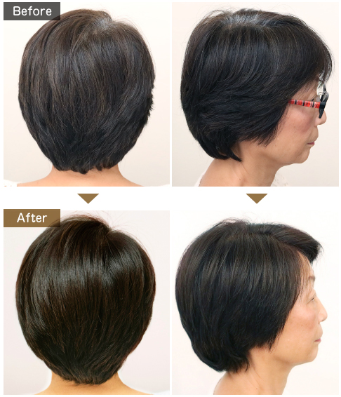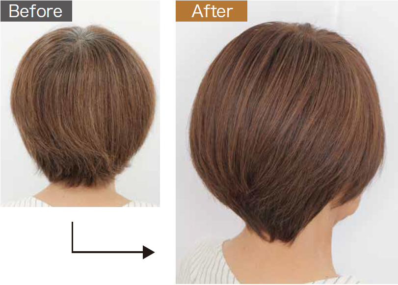 ダークブラックをクリアで薄めた白髪ぼかしの対応は、染めた!という感じが抑えられますので、白髪を活かした仕上がりをご希望の方にオススメ。