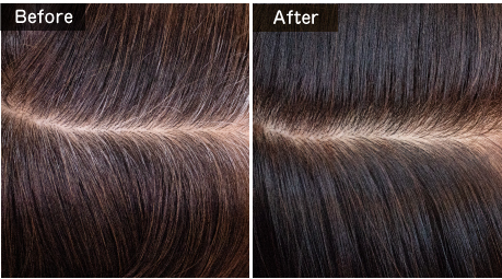 白髪の染まりは弱まりますので、既染部のみやお客さまのご要望にあわせてお使いください。