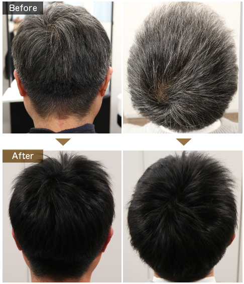 白髪の染まりを優先したブラウン・ダークブラック単色事例