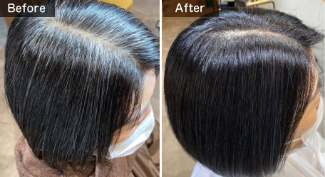 白髪率30% (フロント部40%) 新生部2㎝、事前状態全体9~10Lv