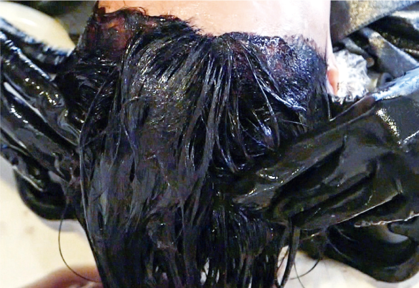 - 既染部にコーミングもしくは塗布して自然放置10分