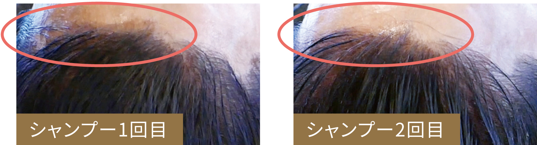 髪全体を一度濡らし、シャンプーを2回ていねいに行うことで頭皮染着は気にならなくなります。