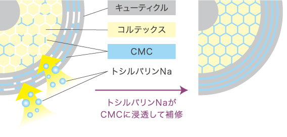 CMC補修成分「トシルバリンNa」※2で弾力アップ。