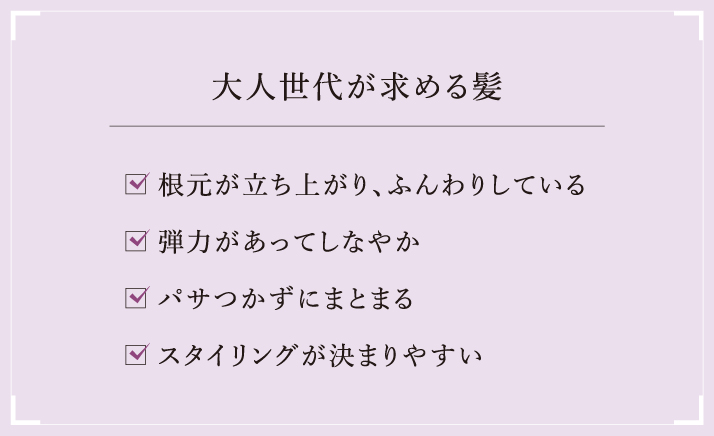 大人世代が求めるふんわりまとまりやすい髪に