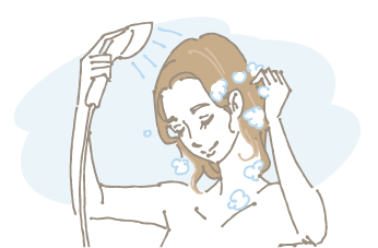①スタイリング剤などを、お湯でしっかり予洗いします。