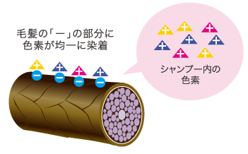 浸透型アミノ酸※で染まりをサポートしながら、アンチブロック染着で髪の「-」部分に色素が均一に染着し、