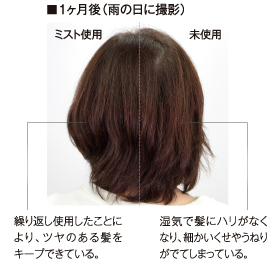 毎日ブロー前に使用することで、湿気が多いときの広がりを抑え、ツヤをキープします。