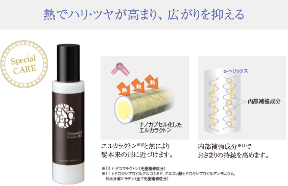 ダメージホールに浸透・定着し、熱を利用して広がりを抑えるミスト状ヘア美容液