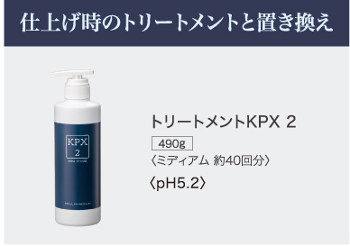 トリートメントKPXは髪の骨組みとなる内部の結合を強化することで、高いダメージの補修レベルが得られます。