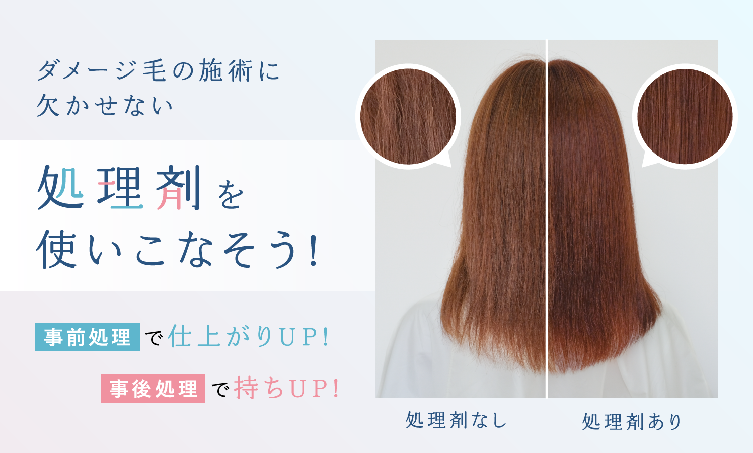 処理剤は『施術前に髪に不足した成分を補う』『施術後のダメージ要因を取り除く』ことができるため、