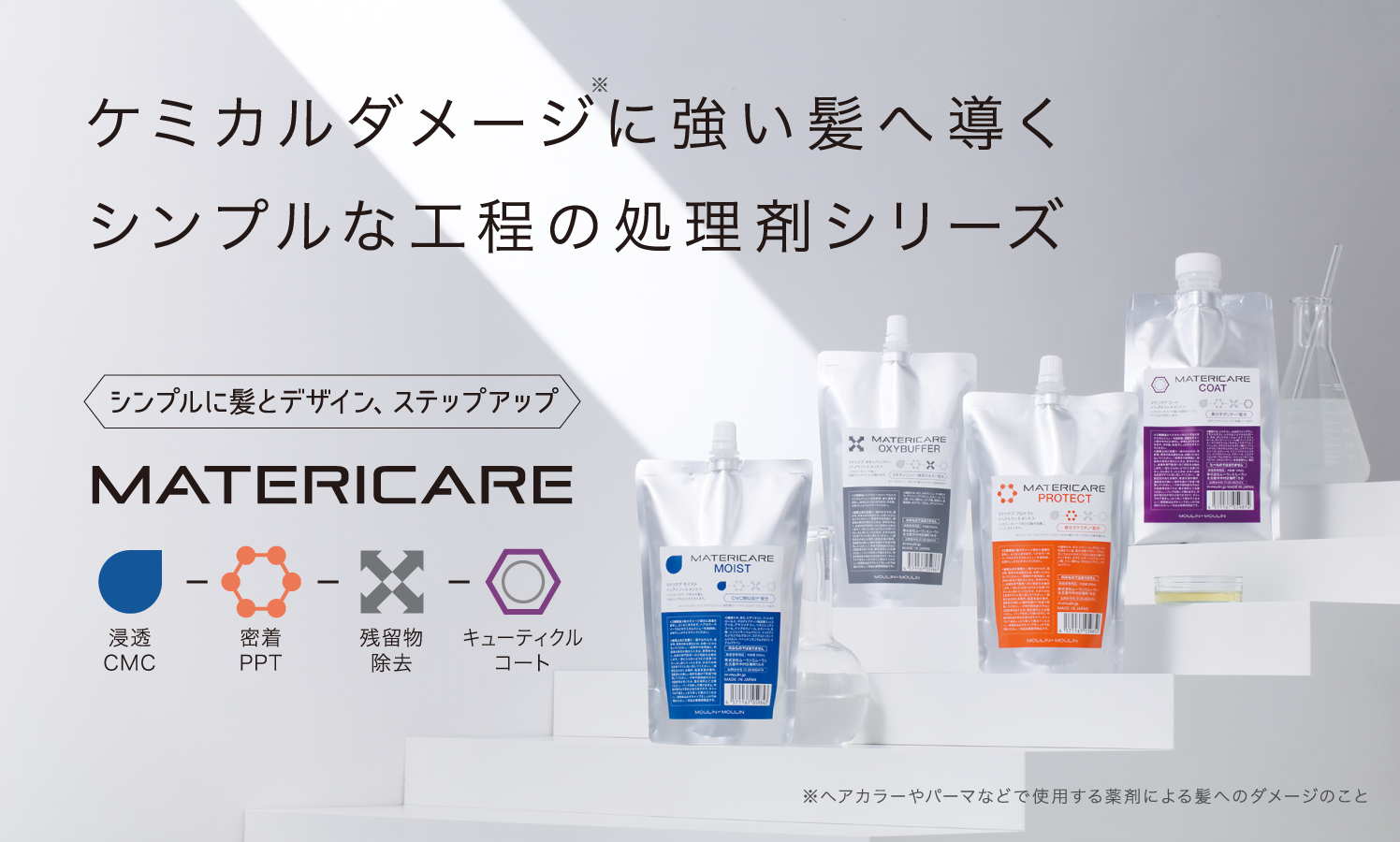 マテリケアは薬剤の効果を引き出しながらダメージを予防、コート仕上げでなめらかに。