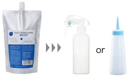 ※モイスト使用量は髪全体でショート10mL(約40プッシュ)、ミディアム15mL(約60プッシュ)、ロング20mL(約80プッシュ)としっかりめに塗布します。(一般的なスプレイヤーの1プッシュあたり0.25mLの容器として計算)