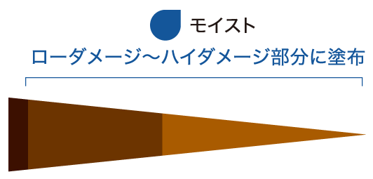 - モイストを塗布した後の毛先などのハイダメージ部分に重ねて塗布します。