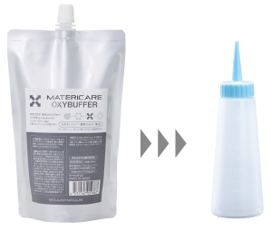 - オキシバッファーをすすいだ後に普段のトリートメントと置き換えで使用します。