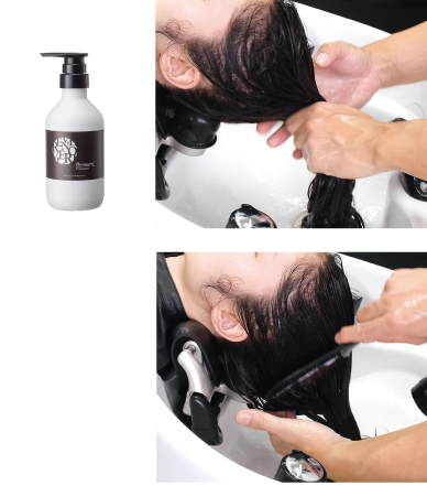 - 【シャンプー】髪全体をシャンプーの泡でつつみ込み、うるおい成分を浸透させながら洗う