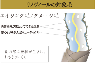リノヴィールはダメージによる空洞部分を整えて、髪本来の形に近づけ、ツヤ・おさまりの良い髪に整えます。