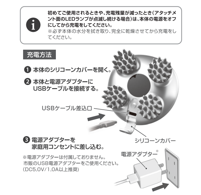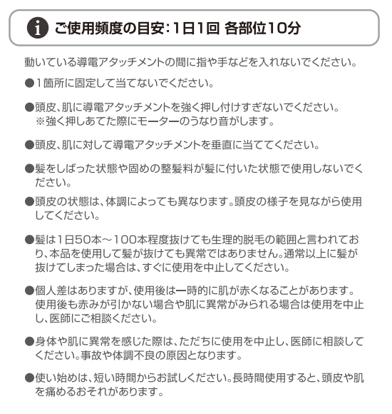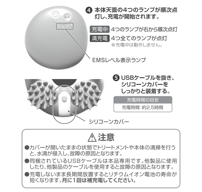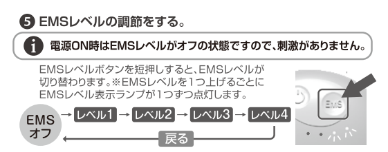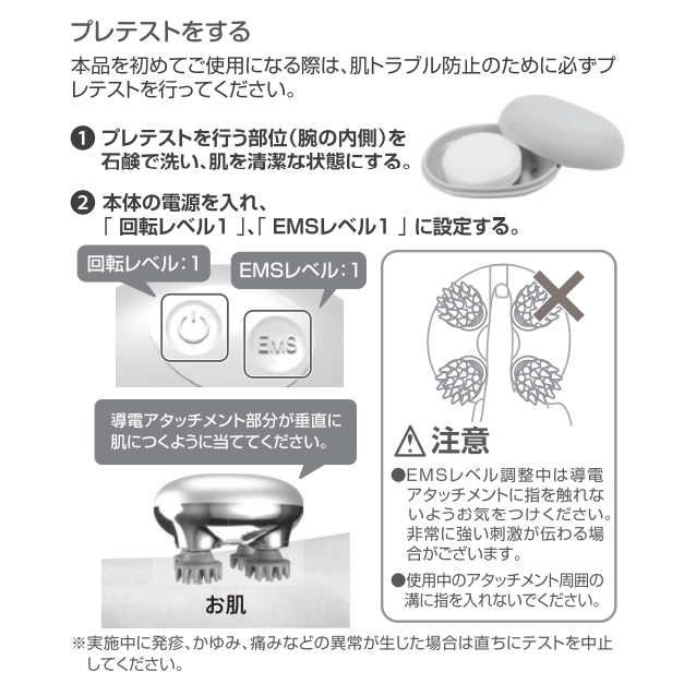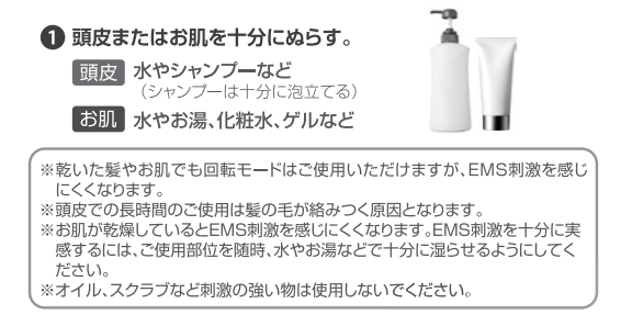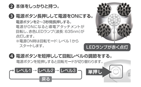 ※初めてご使用する際は、必ず回転・EMSレベルはレベル1から使用し、身体に慣らしてからレベルを調整してください。