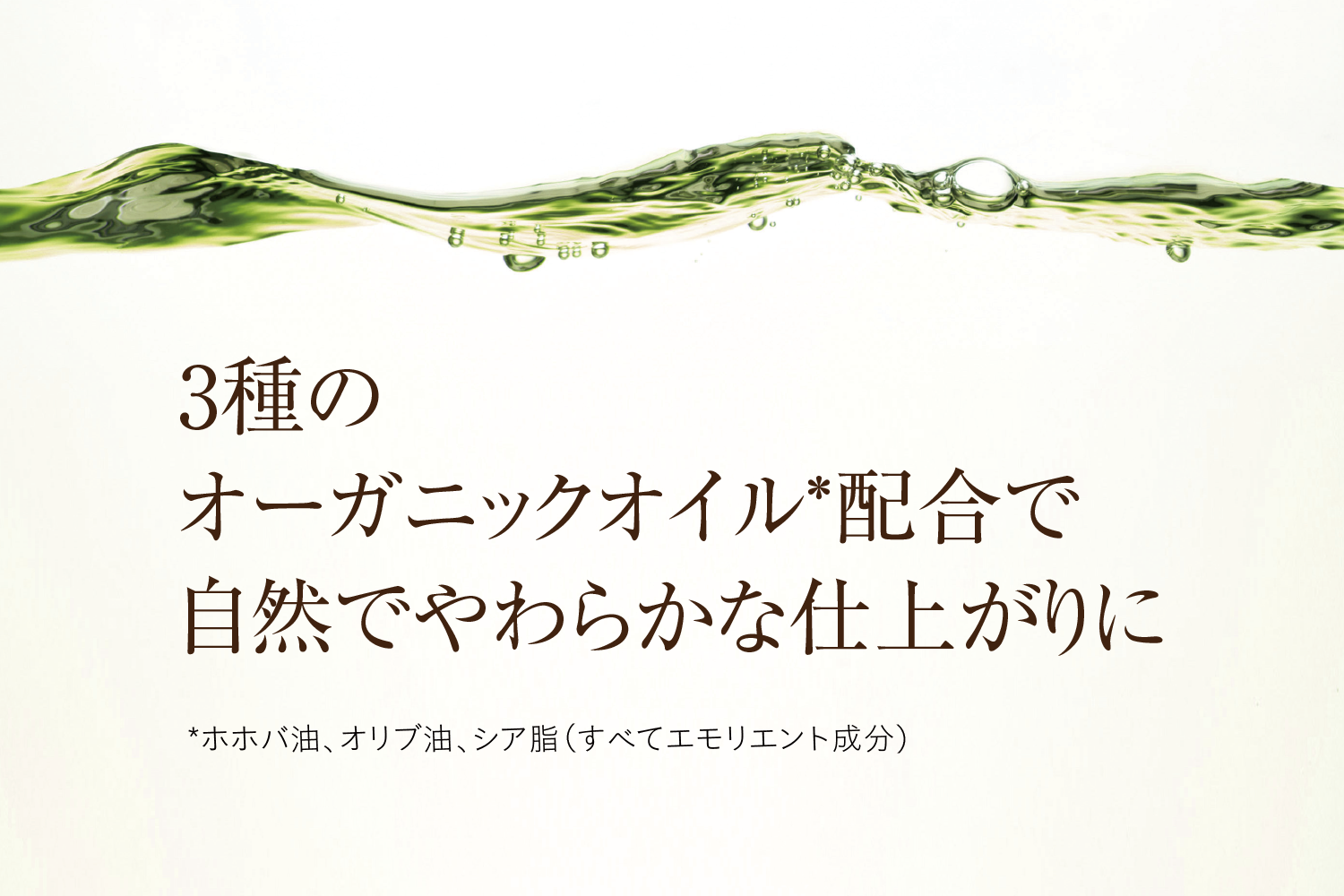 3種のオーガニックオイル配合で自然でやわらかな仕上がりに