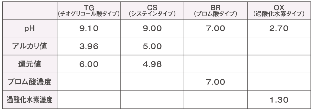 TG(チオグリコール酸):対象毛⇒健康毛〜12レベル 硬毛・普通毛