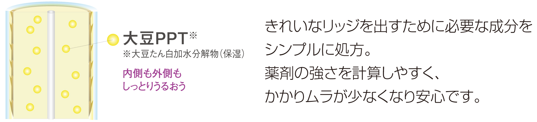 大豆から得られるタンパクで、グルタミン酸・アスパラギン酸といった酸性アミノ酸を約3割含有すると共に微量のシスチンも含有。分子量が700と小さいため、傷んだ毛髪内部に浸透し、枝毛やパサついた毛髪をしっとりとツヤのある髪に仕上げる効果があります。
