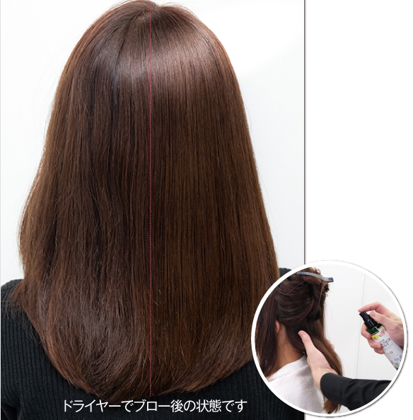 ブローの前にお使いいただいくだけでツヤ髪体験ができる。