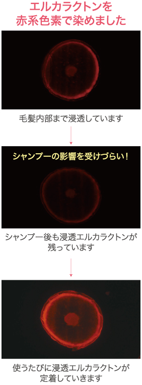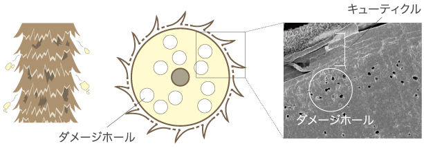 浸透エルカラクトンなどのツヤ髪成分がダメージホールに素早く届く