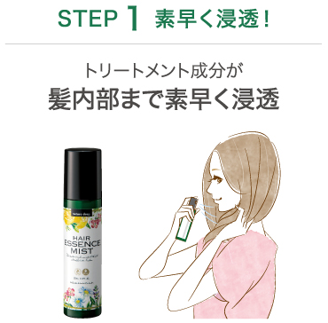 - 毎日のドライヤーがサロントリートメントタイムになるミストタイプのヘア美容液です。