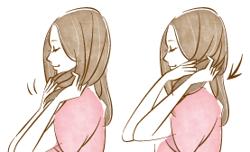 中間部分は毛束を少し持ちあげて内側から指を通し、毛先に向かってなじませます。