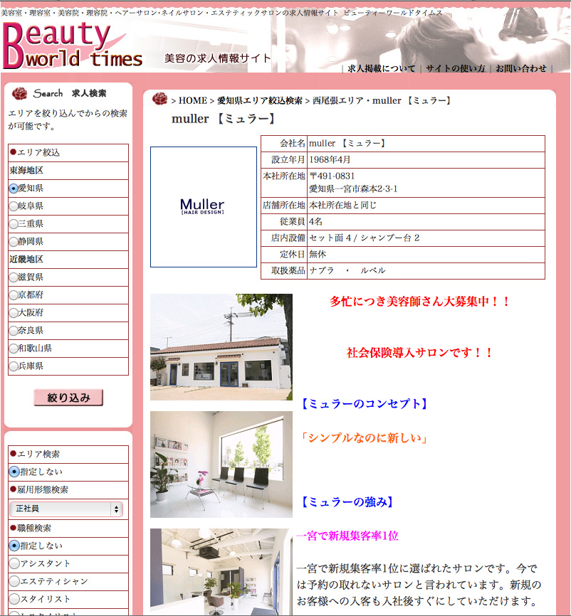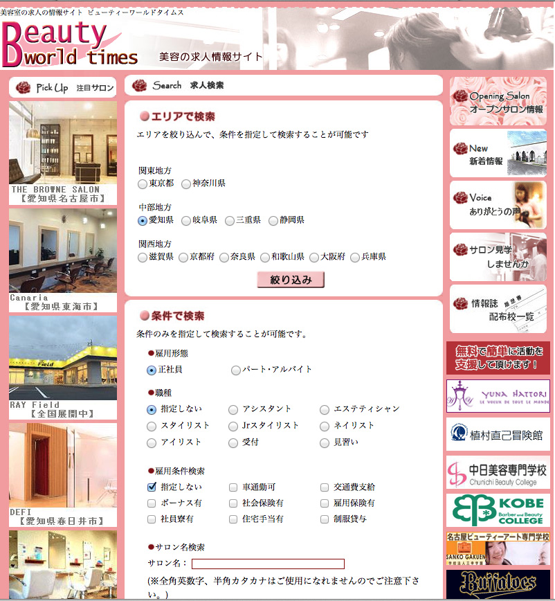 美容室専門 美容師求人募集サイト「ビューティーワールドタイムス」(東海・関西)
